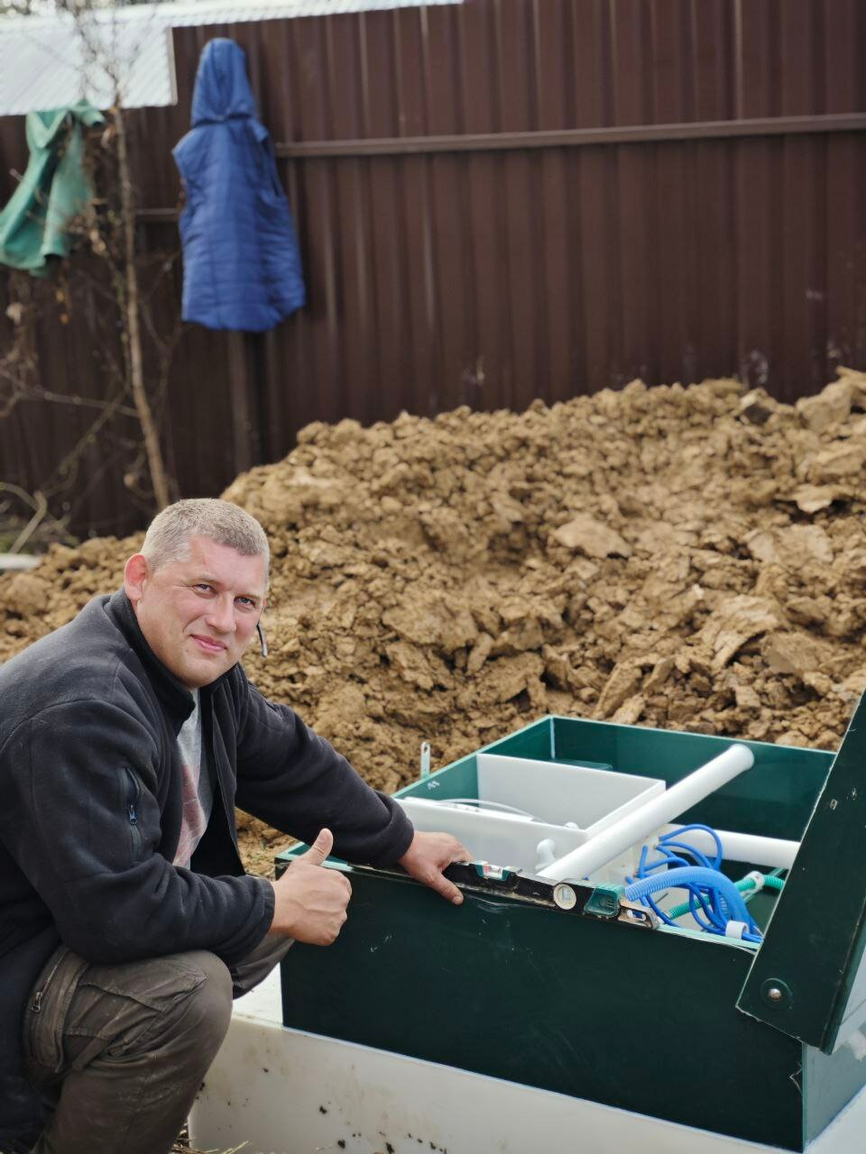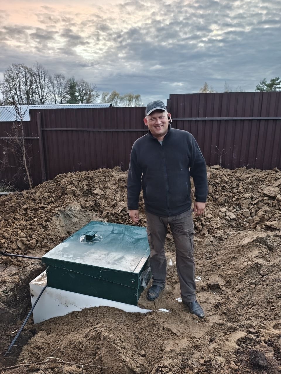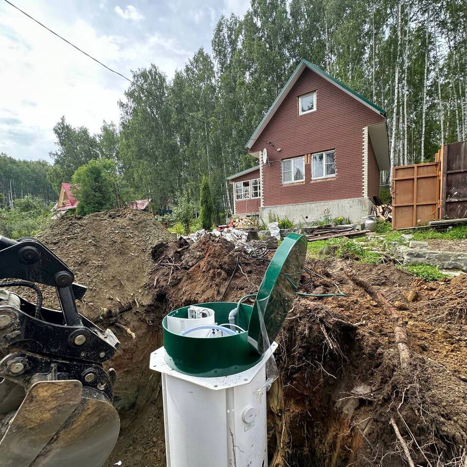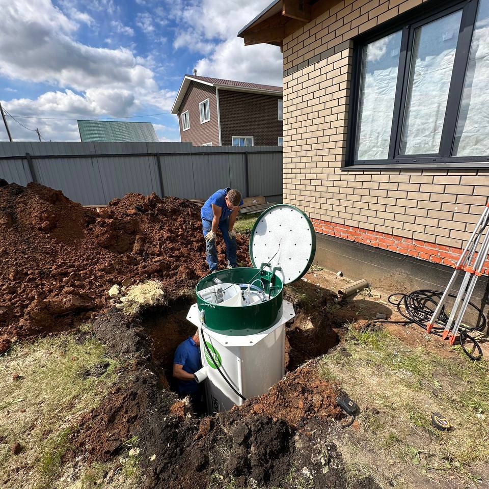 За день установили септик на любимой даче. Воду сбрасывает в дренажный колодец, использую для полива. Монтаж грамотный, все меряют по уровню, работают слаженно. Запаха нет! Вообще! Перезимовала станция нормально. Спасибо